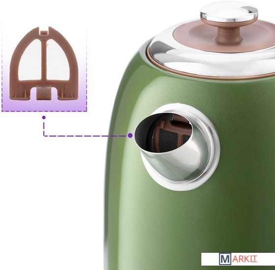 В носике чайника расположен съёмный фильтр, который задерживает частички накипи и предотвращает их попадание в чашку.Чайник оснащён контроллером Strix. Он устраняет риски короткого замыкания и возгорания прибора. Обеспечивает защиту при закипании, при включении чайника без воды и при снятии с базы во время работы.