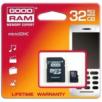 Карта памяти GOODRAM microSDHC (Class 4) 32GB + адаптер [SDU32GHCAGRR10] Код: 96370
