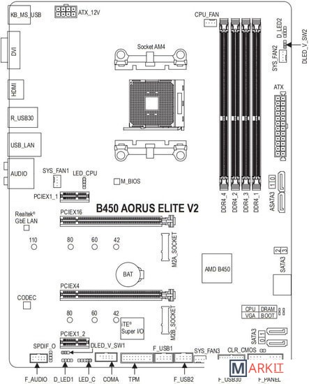 Markit » Материнские платы » Материнская плата Gigabyte B450 Aorus Elite V2 (rev. 1.0)