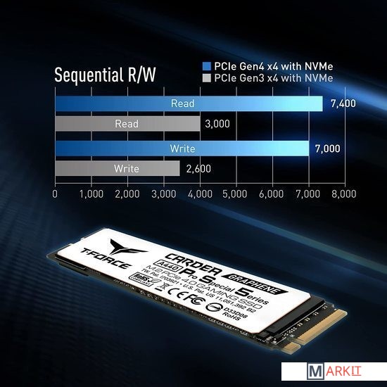 Скорость последовательного чтения 7 400 МБ/с