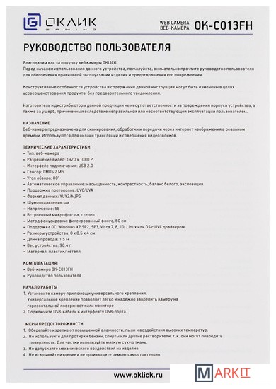 Markit » Веб-камеры » Веб-камера Oklick OK-C013FH